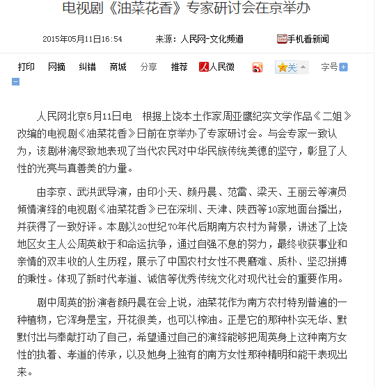各大媒體廣泛報(bào)道電視劇《油菜花香》專家研討會(huì)